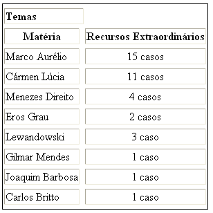 das causas. A ministra foi relatora em 11 Recursos Extraordinários.